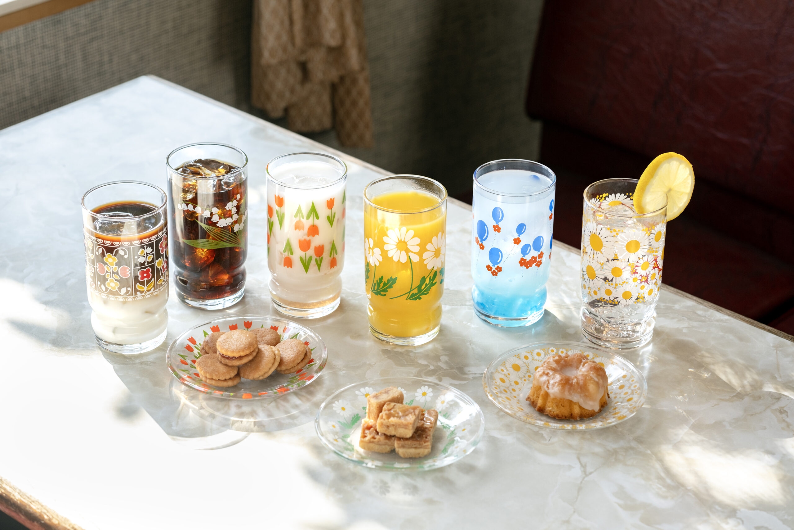 We are excited to introduce “Aderia Arrange”, a new addition to our beloved Aderia Retro glassware series. This new line revives the charming, rounded glass shapes from the 1970s, featuring 6 nostalgic floral patterns.