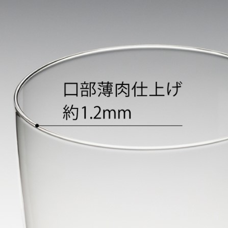 Manufactured using machines originally developed for wine glasses, these glasses achieve an exceptionally thin and lightweight design. They feature the smooth texture inherent to glass and a refined, premium appearance.